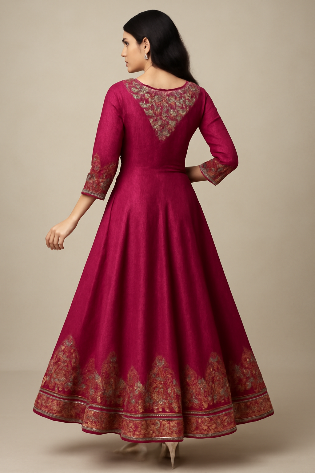 Bring grace and elegance to your wardrobe with this stunning Maroon Printed Anarkali Cotton Kurti for Women. Designed with a flattering flare, this kurti showcases intricate ethnic prints in vibrant hues of orange, blue, and green over a rich maroon base. The round neckline with a small slit and 3/4th sleeves add sophistication, while the detailed printed borders on sleeves and hemline enhance its ethnic beauty. Crafted from soft breathable cotton, this kurti is perfect for festive gatherings, parties, and cultural occasions. Pair it with churidar, leggings, or palazzos and accessorize with statement jewelry to complete the look.