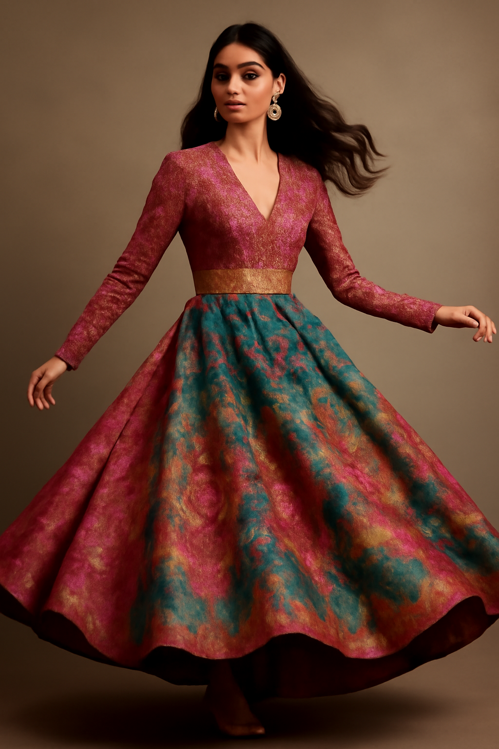 Colors: Blend of rich wine, teal, gold, and rose tones